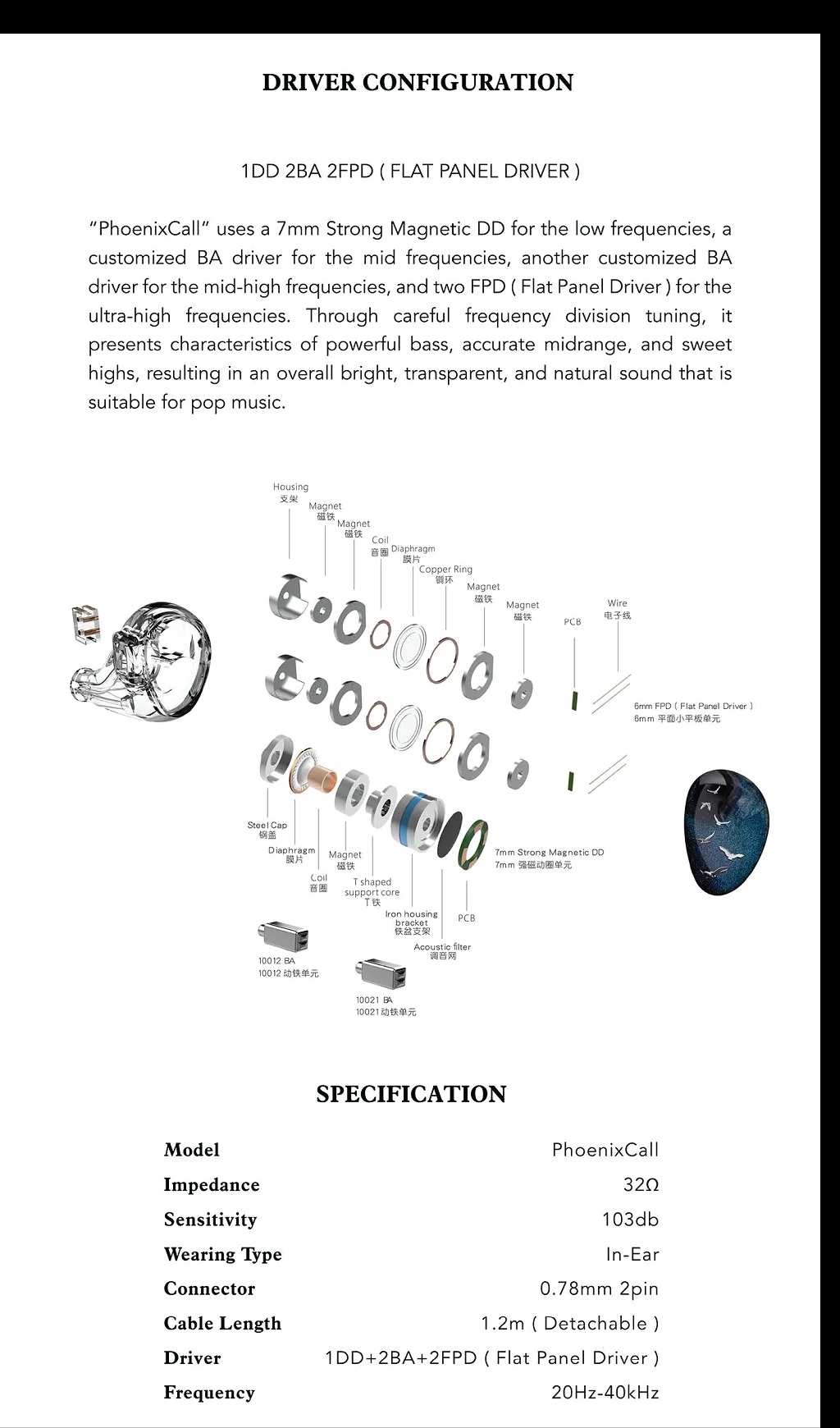 Acoustic Drivers:1DD+2BA+2 Micro Planar Drivers(FPD)
