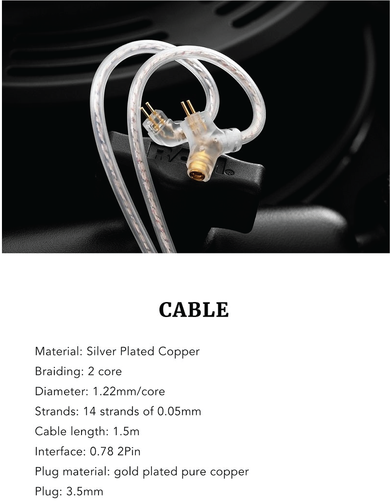 Strands: 14*0.05mm + 250D silver-plated wire * 3C + 39*0.05mm silver-plated wire winding / 14 strands of 0.05mm (Pro)