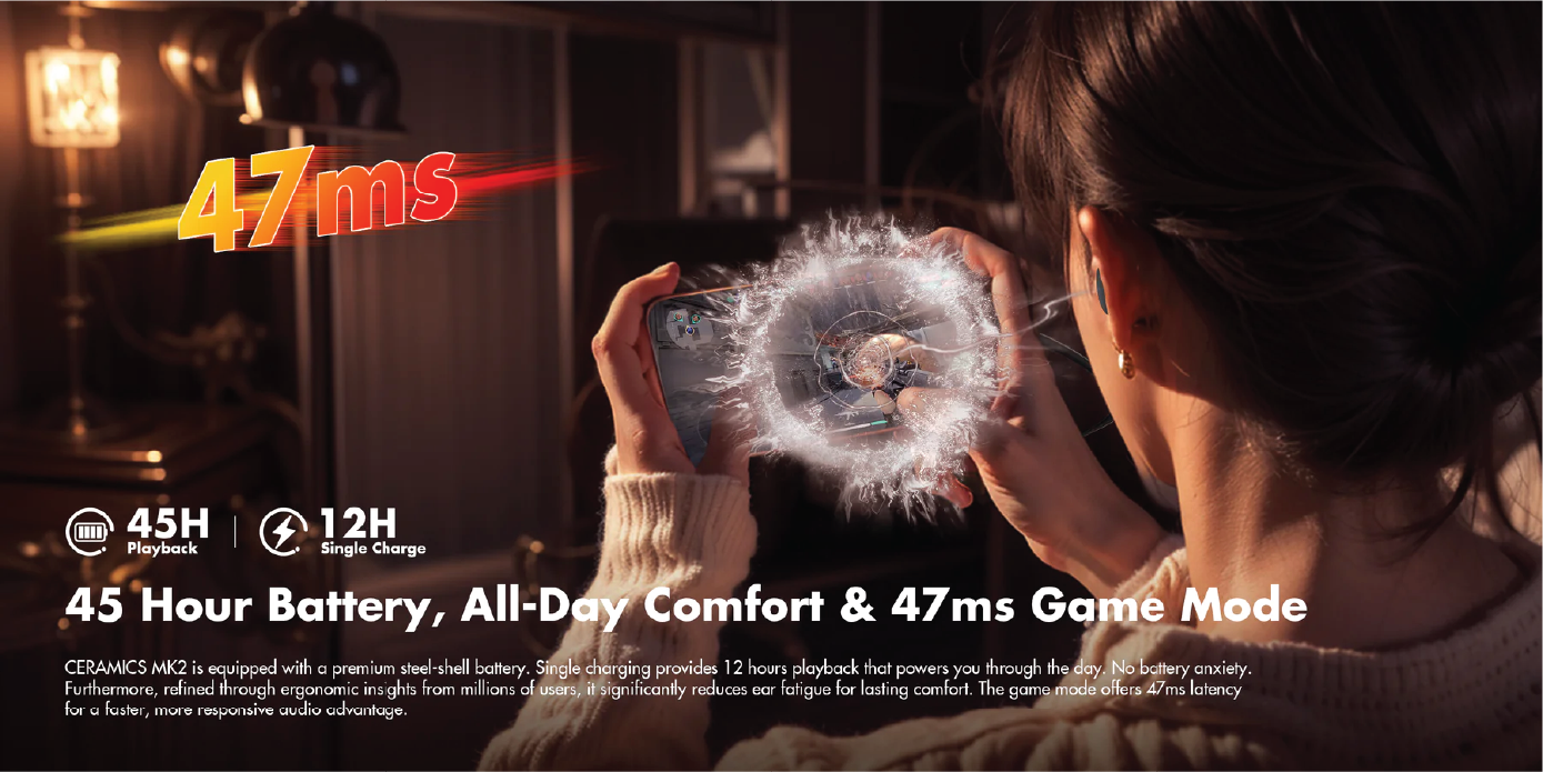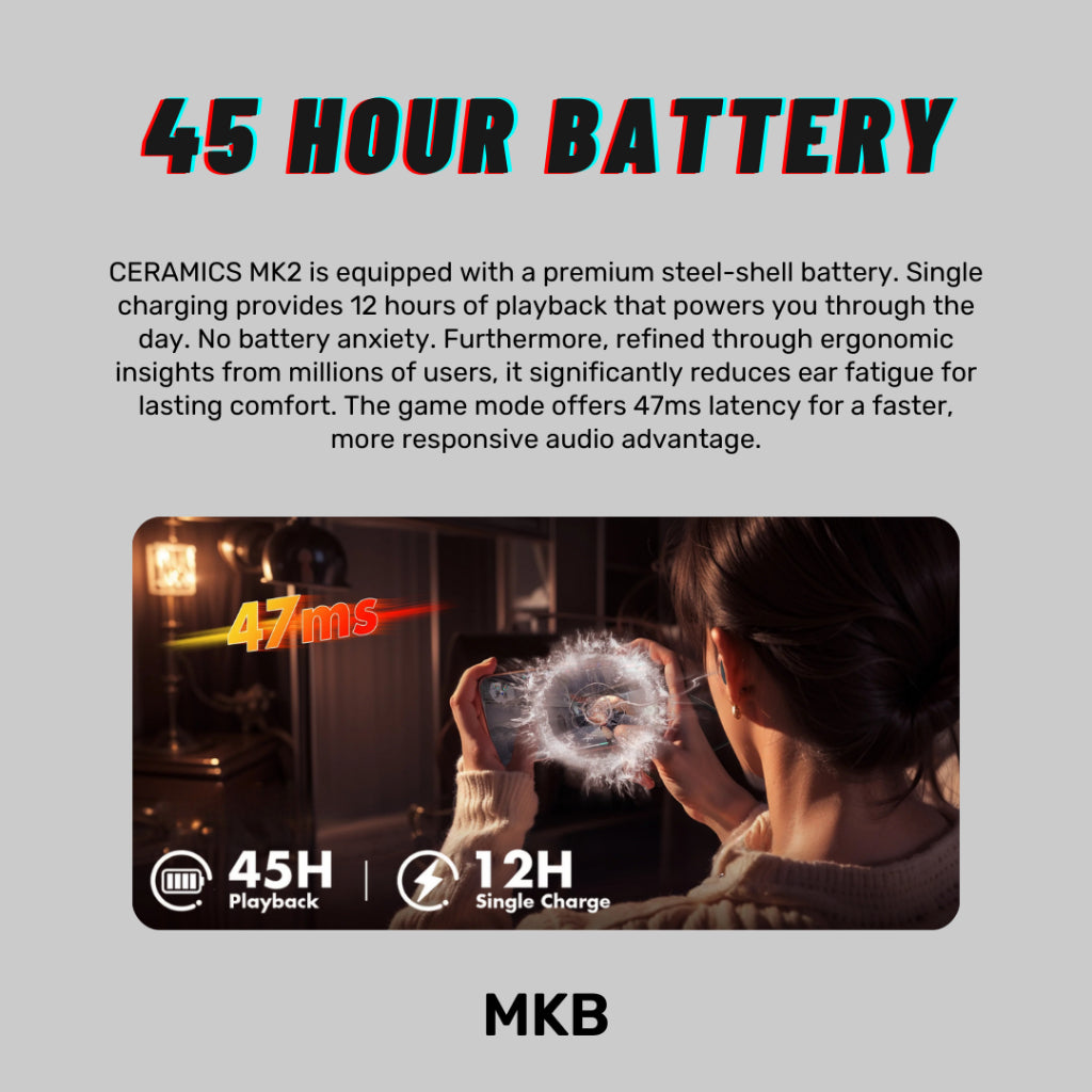 Battery Life: 12h per Charge/ 45h with Charging Case