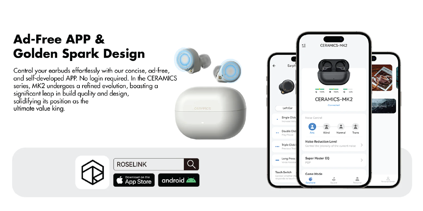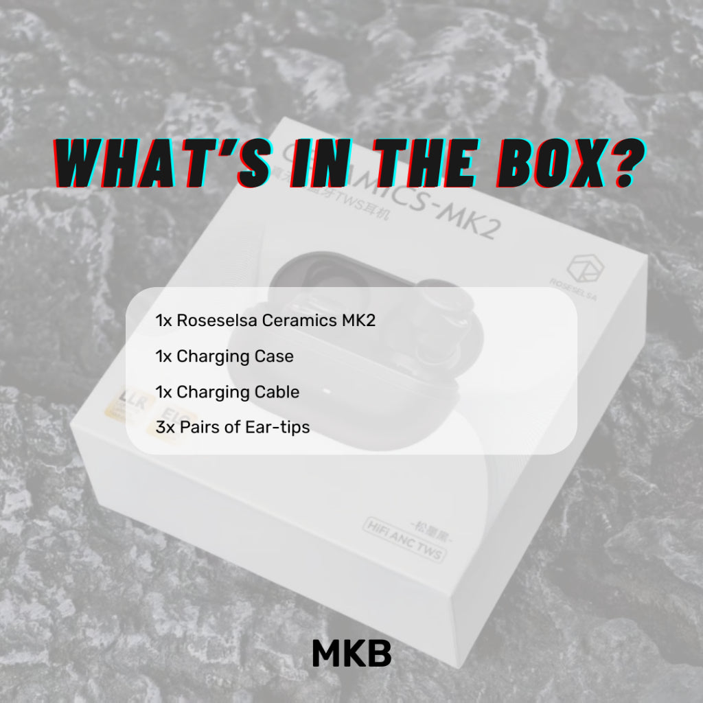 In the Box:1x Roseselsa CERAMICS MK2 Earphones1x Charging Case