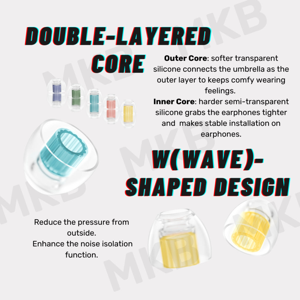- Inner harder silicone makes W1 more stable when the ear tips are installed on earphones.